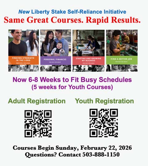 We encourage you to sign up soon for a Self-Reliance course. Please invite others to attend as well. Courses launch the week of Sunday, February 22, 2026. Online registration is open now!